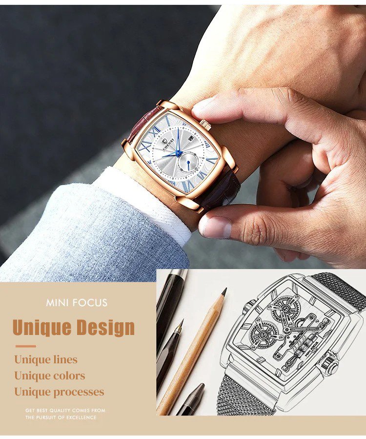 Men’s Square Dial Genuine Leather Watches